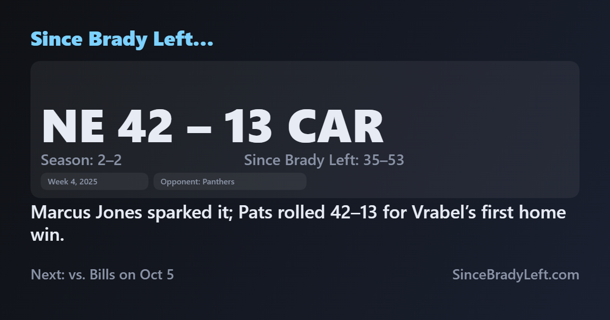 A factual, gently cheeky look at the Patriots after the Brady era. Updated weekly during the season.